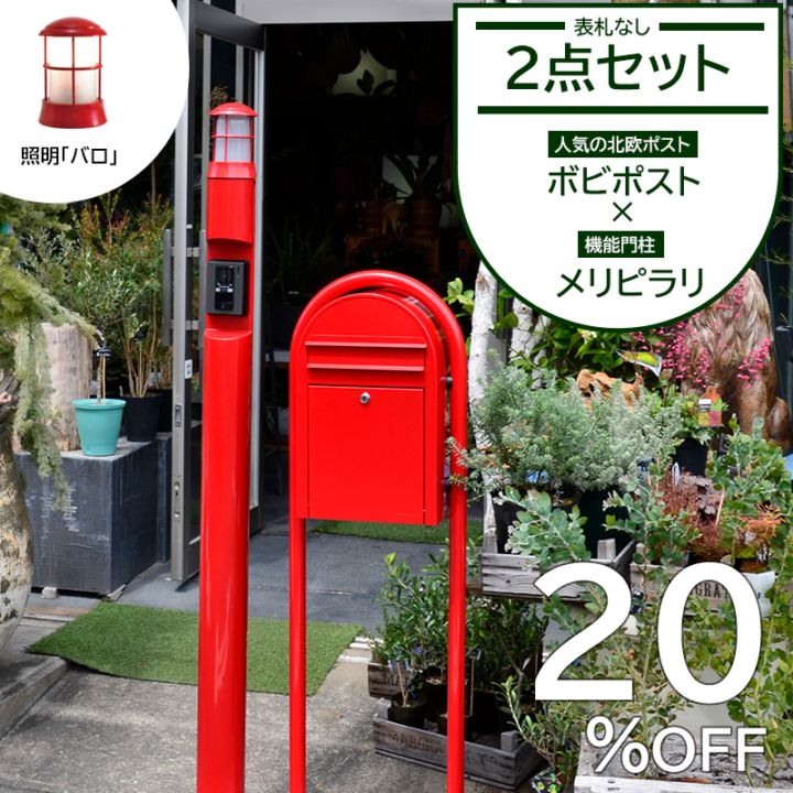 【20%OFF】北欧ボビ&機能門柱の2点セット|bobiポスト(ポール付き)+メリピラリ機能門柱+バロ照明|新築戸建てに人気の北欧デザイン