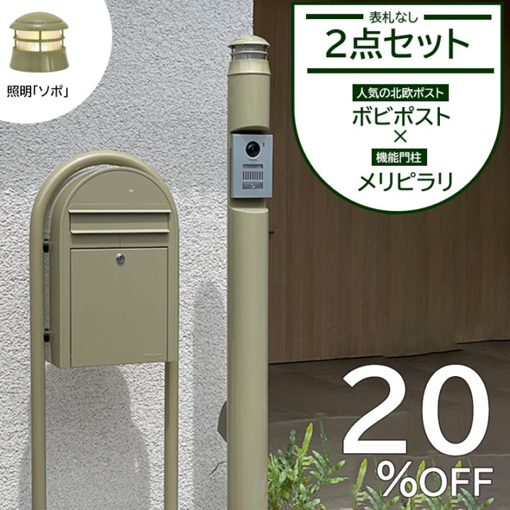 【20%OFF】北欧ボビ&機能門柱の2点セット|bobiポスト(ポール付き)+メリピラリ機能門柱+ソポ照明|新築戸建てに人気の北欧デザイン