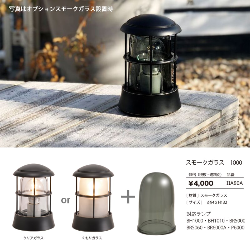 BH1010は、船舶用の照明器具として使われてきたバルクヘッドライトを日本のエクステリア用にアレンジした傘付きのマリンランプ。 バルクヘッドライトの特長でもある格子状のガードをまといながらも、柔らかくすっきりとしたデザインに仕上げました。 ガーデンライト、エクステリアライトとしてだけでなく、その洗練さたデザインと機能から、室内用の照明としても広用途でお使い頂けます。 取付方向も壁面(横向き)、雨の当たらない軒下や天井(下向き)、床面(上向き)と幅広く対応します。 採用するLEDランプは、白熱電球の雰囲気を残しながらも省エネ、長寿命仕様となる様、当社独自に考案。通常、一直線に強く光るLEDを、多方向に分散させ白熱電球の灯り方に近付けました。オプションのスモークガラスを設置すれば、よりシックな印象を与えインダストリアルデザインの世界感をお庭で展開できます。