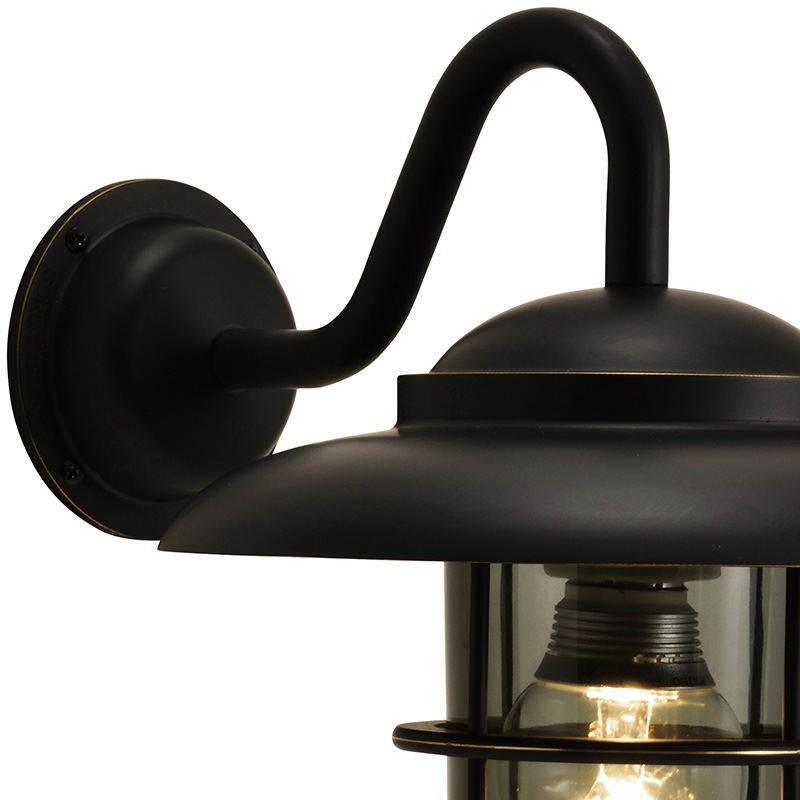 美しい曲線美のブラケットアームがレトロな雰囲気漂う中型サイズのポーチライト。トレンドのブラック仕上げは、マットな仕上げの合間から見える真鍮色の輝きが深みを演出します。エクステリアには、白壁やコンクリートと合わせたモダンスタイルからレンガや板壁と合わせたナチュラルスタイルまで、合わせ方次第で幅広いスタイルに取り入れられます。インテリアに使うなら、ポイントにブラックを取り入れたレトロな雰囲気の部屋や、マリンスタイルをシックに取り入れたい方におすすめです。