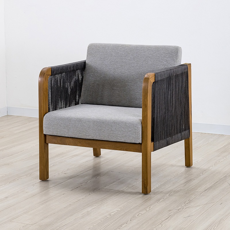 ナチュラルな木の温もりとモダンなデザインが融合した、理想的なラウンジチェアです。温かみのあるウッドフレームが洗練された上品な雰囲気を演出し、どんな空間にも特別な魅力をプラスします。しっかりとした構造が安定感をもたらし、厚みのあるクッションが快適な座り心地を提供します。