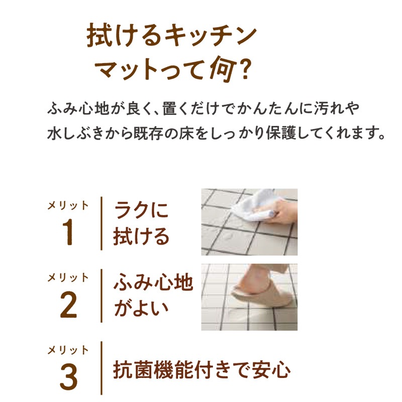 汚れも拭ける、ふみ心地のよいキッチンマット|ファブールデコ|サンゲツ|厚み1cm|抗菌機能付き|置くだけでかんたん|