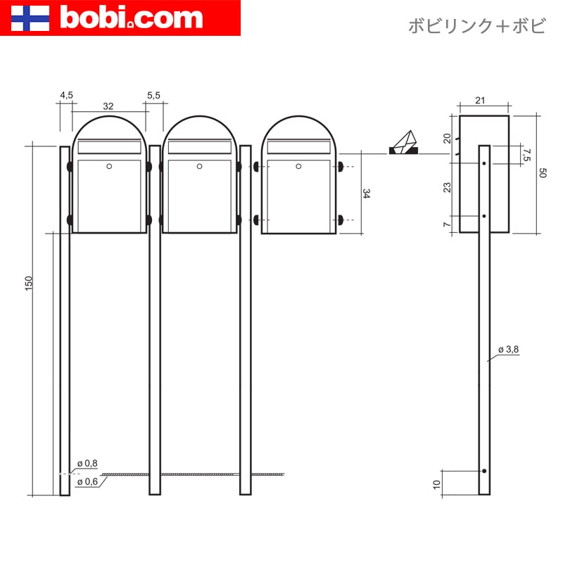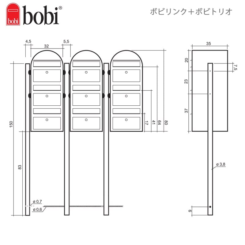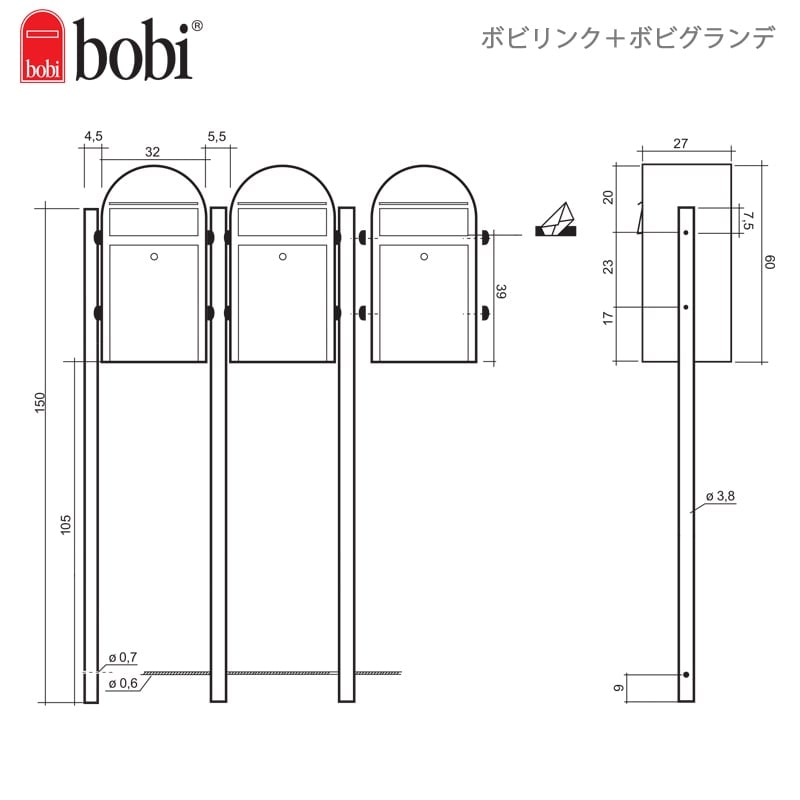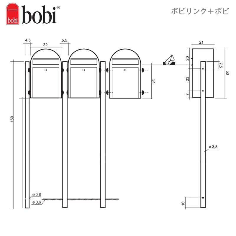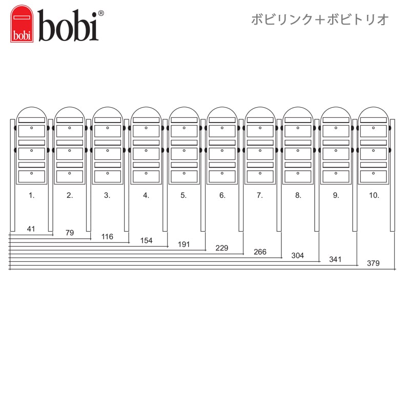 ボビリンクは、ボビポストを何個でも連結できます。連結して集合住宅に。独立して戸建てにも対応できる設置スタイルの豊富さが魅力です。ボビリンクの販売単位は1本です。