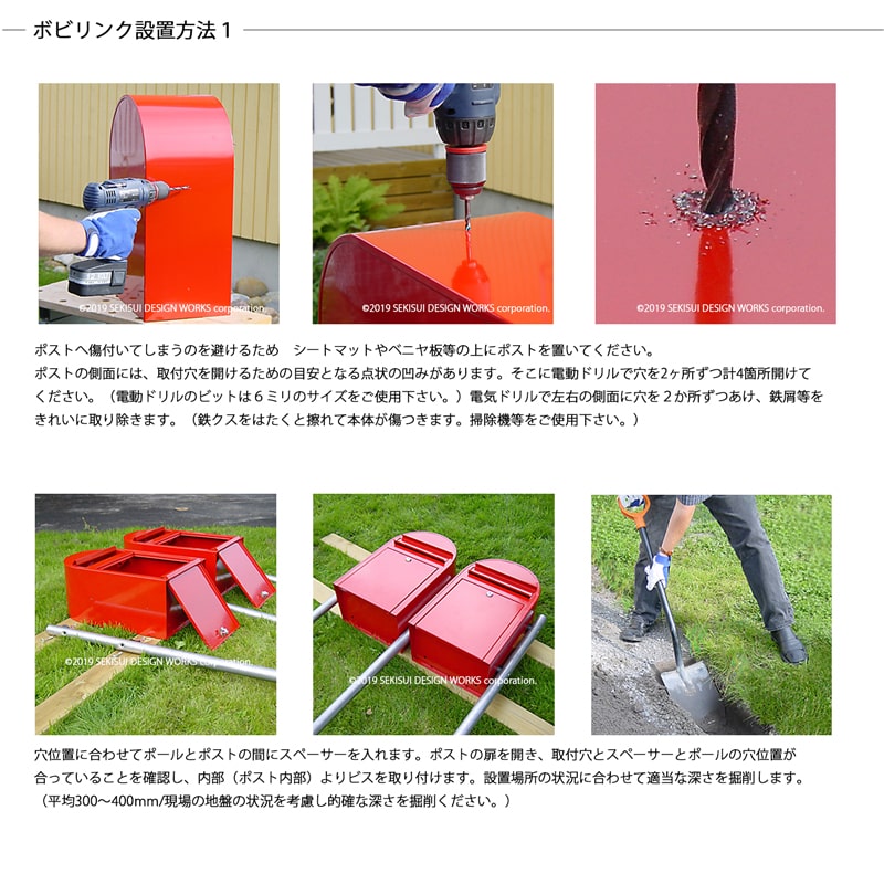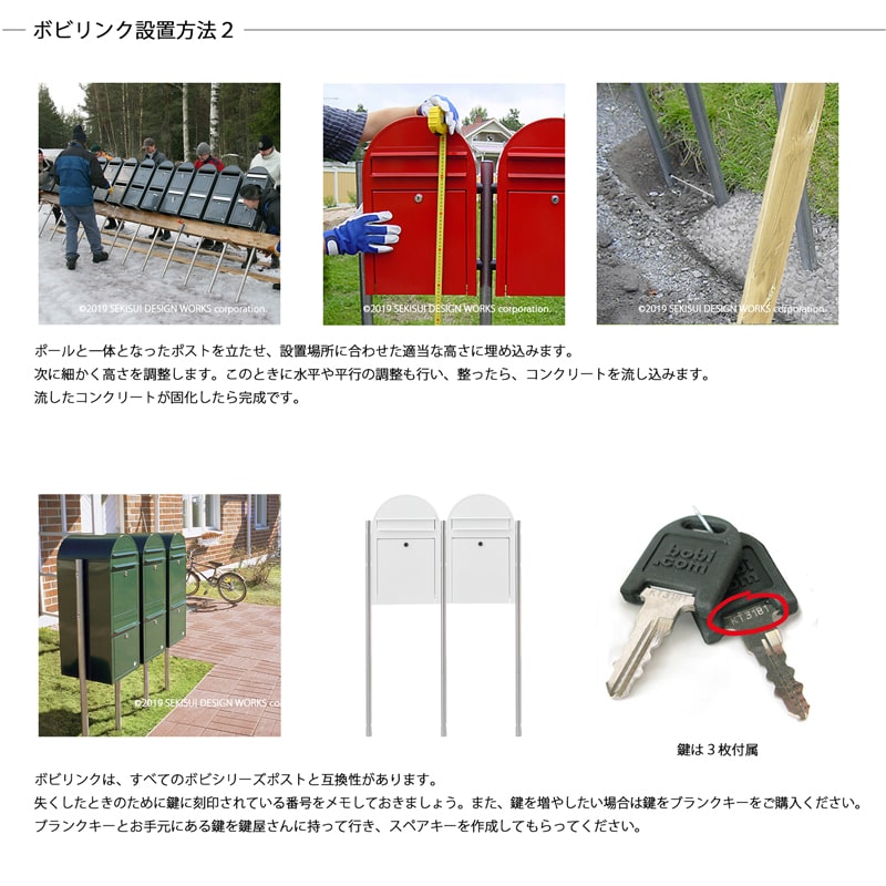 単独でポストを設置する場合・・・・・ボビリンク 2本必要 2個連結する場合・・・・・・・・・・ボビリンク 3本必要
