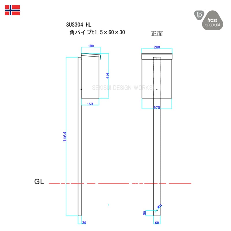 郵便ポスト「オスロ」専用ステンレスポール