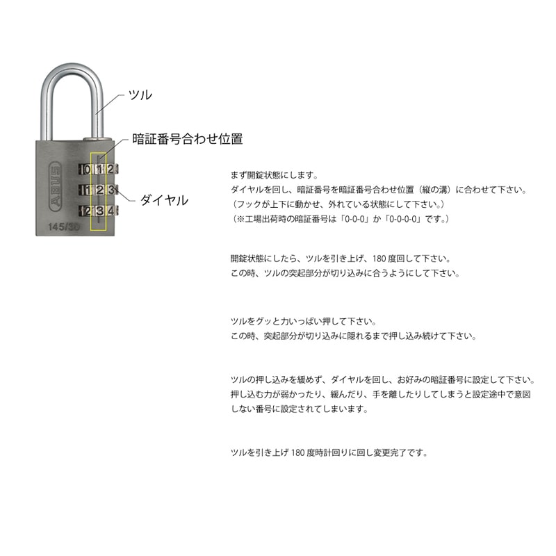 暗証番号を合わせてもツルが動かない場合、暗証番号をお忘れの場合につきましても、次の手順を行ってください。