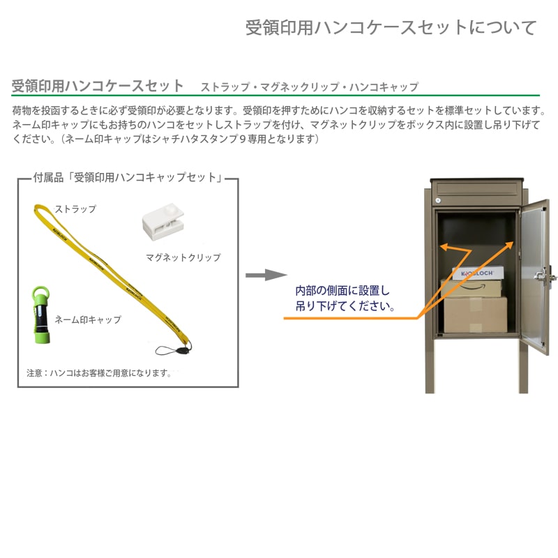 宅配物受け取りのため、お客様ご自身でシャチハタなど三文判をご用意の上、印鑑ケースに設置ください。