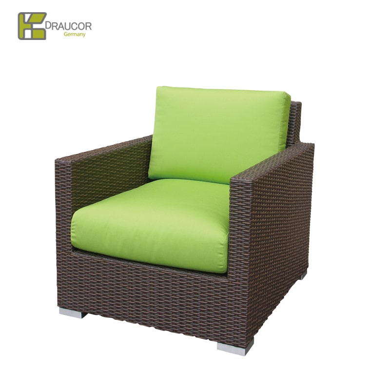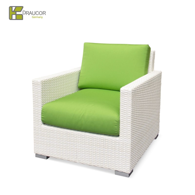 南国の感覚あふれるガーデンファニチャードイツの【REHAU(レーハウ)社】が企画、自社工場にて製造した「RAUCORD」と呼ばれる HDPE(高密度ポリエチレン)を丁寧に手編により、自然な風合い・高級感・温かさを併せ持っています。お手入れ簡単&環境に優しい素材の屋外用家具。 すべての商品を日本のお客様に合うサイズにデザインしており、海外の大きいサイズでは合わない日本の住環境や体格に配慮しているので快適な座り心地です! 本体カラーバリエーションは3種類。「ダークブラウン」「ホワイト」「ナチュラル」(※ホワイト・ナチュラルは受注生産品です。納品までに約3-4か月かかりますのでご注意ください。 クッションは別売り。一流ホテルで使用されているイタリア製生地「tempotest」を用いた、屋外使用可能なクッション。日本で丁寧に縫製加工。