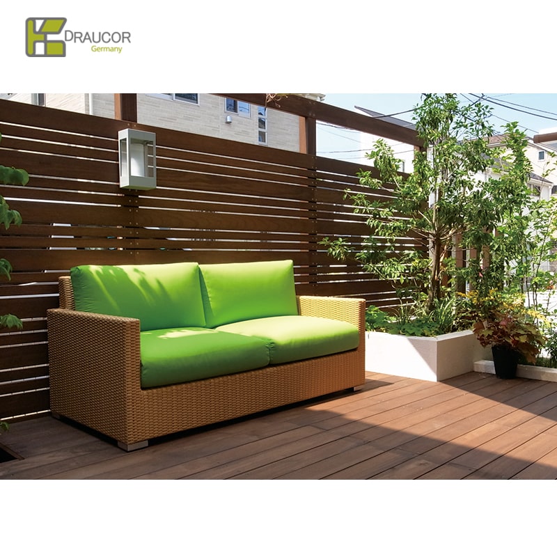 南国の感覚あふれるガーデンファニチャードイツの【REHAU(レーハウ)社】が企画、自社工場にて製造した「RAUCORD」と呼ばれる HDPE(高密度ポリエチレン)を丁寧に手編により、自然な風合い・高級感・温かさを併せ持っています。お手入れ簡単&環境に優しい素材の屋外用家具。 すべての商品を日本のお客様に合うサイズにデザインしており、海外の大きいサイズでは合わない日本の住環境や体格に配慮しているので快適な座り心地です! 本体カラーバリエーションは3種類。「ダークブラウン」「ホワイト」「ナチュラル」(※ホワイト・ナチュラルは受注生産品です。納品までに約3-4か月かかりますのでご注意ください。 クッションは別売り。一流ホテルで使用されているイタリア製生地「tempotest」を用いた、屋外使用可能なクッション。日本で丁寧に縫製加工。