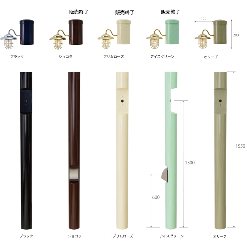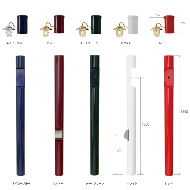 【サイズ支柱】Ф114XH1900(埋設部350含む)、照明:W136XH200XD269mm 、オプション表札 :H75XW180mm