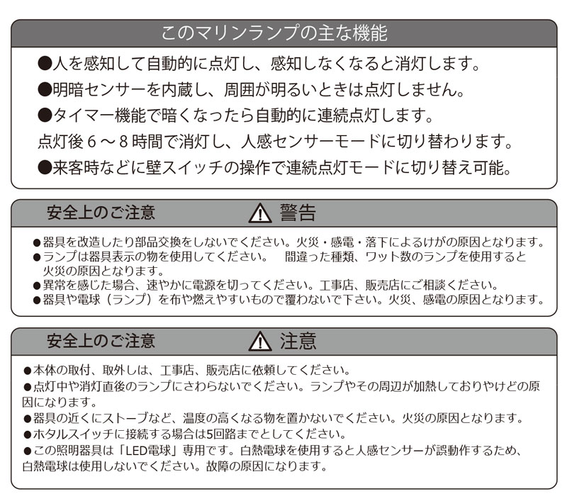 落ち着いたシックな装いのマリンランプ人感センサー付き