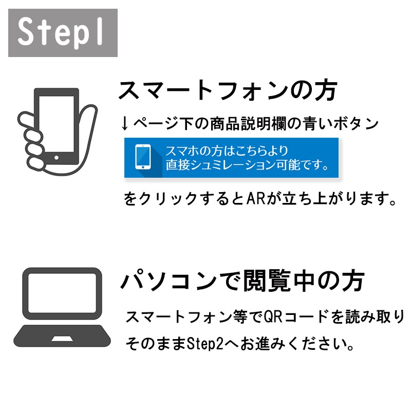 パソコンの方は、スマートフォン等でQRコードを読み取りそのままStep2へお進みください。