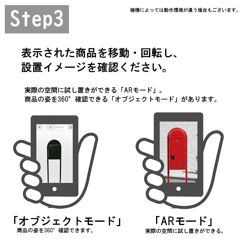 表示された商品を移動・回転し、設置イメージを確認ください。
