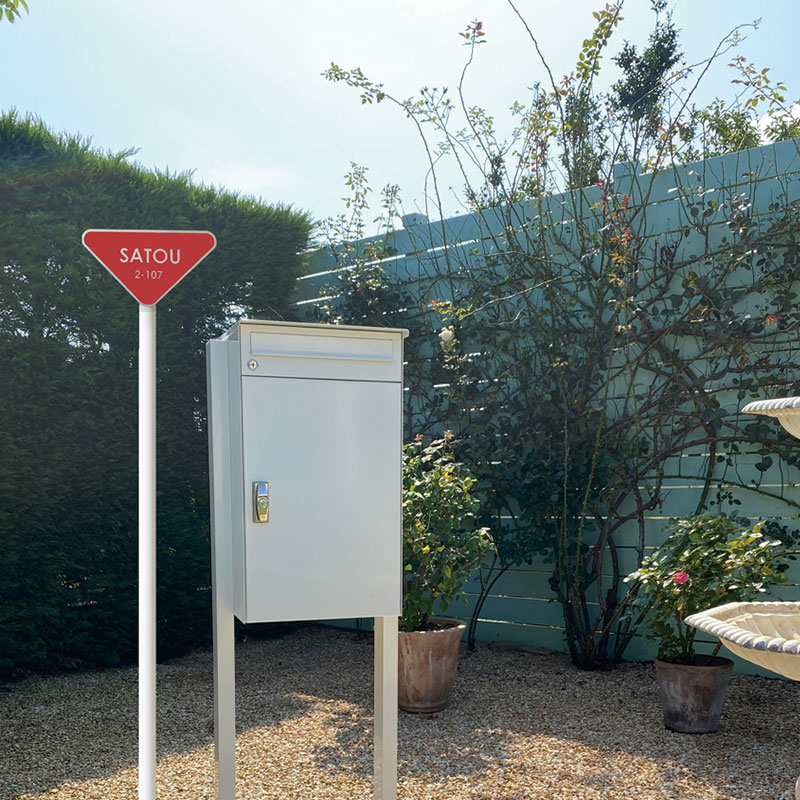 たくさんの幸せが立ち寄りますようにとの願いをこめたアイコニックなサインポールです。ポストの隣だけでなく単独でも際立つ存在感を放ち、家の顔として活躍します。