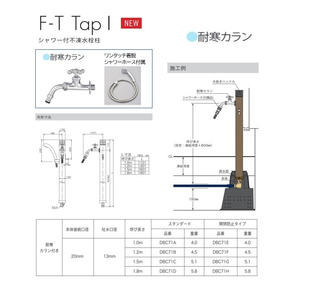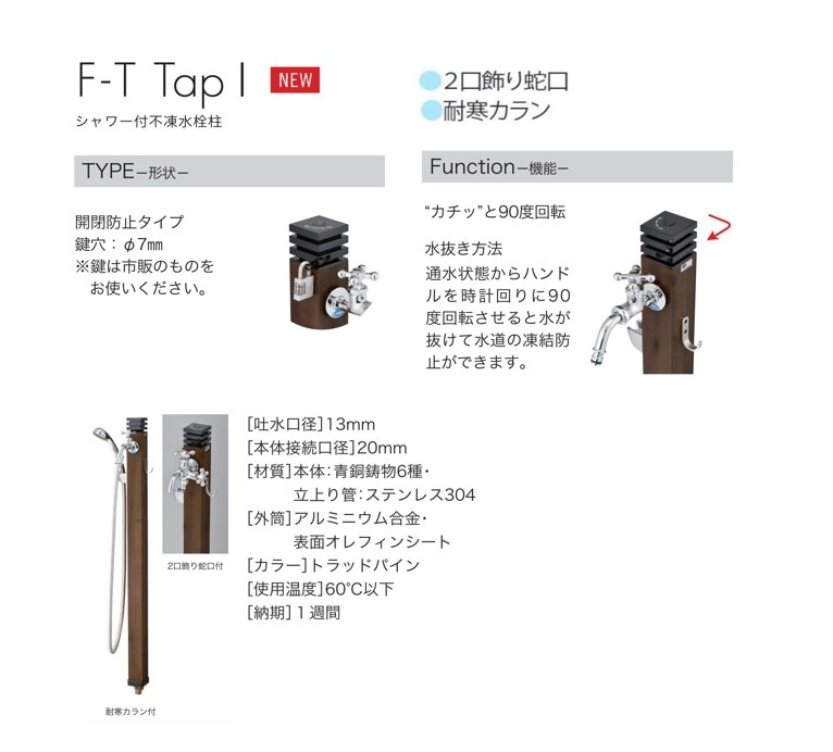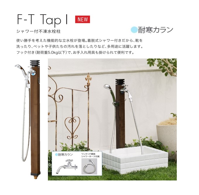 [不凍水栓】F-T Tap 1/ 2口飾り蛇口付き/シャワーホース付き/単水栓