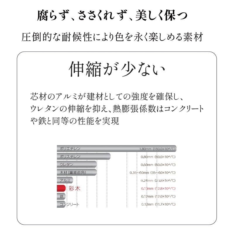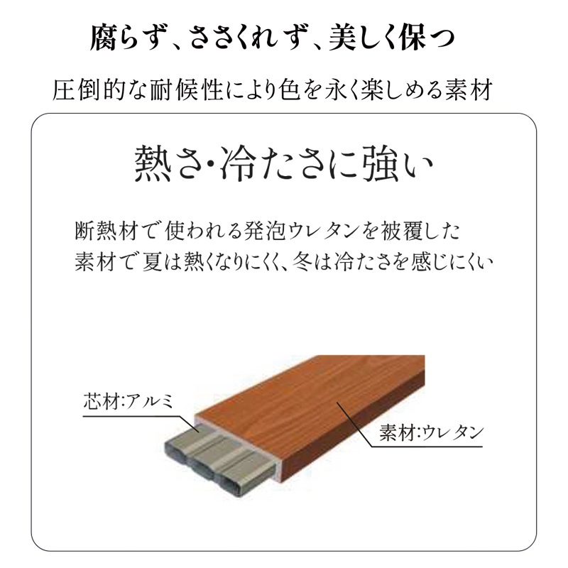 | 材質 | 人工木材(アルミ形状/硬質低発泡ウレタン樹脂) |