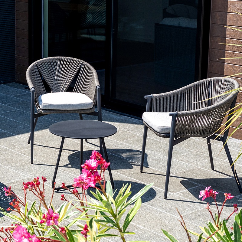 軽量でありながら頑丈で耐久性に優れたアルミニウム製です。軽量のため移動しやすく、テラスやガーデンなど空間をスタイリッシュに演出します。コンパクト設計のため使い勝手の良いサイズにデザインされています。