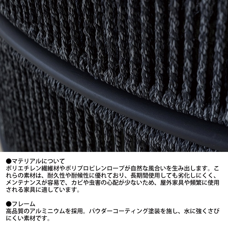 素材:アルミニウムフレーム・ポリプロピレンロープ・チーク材