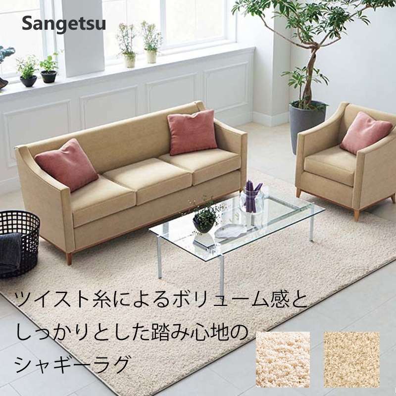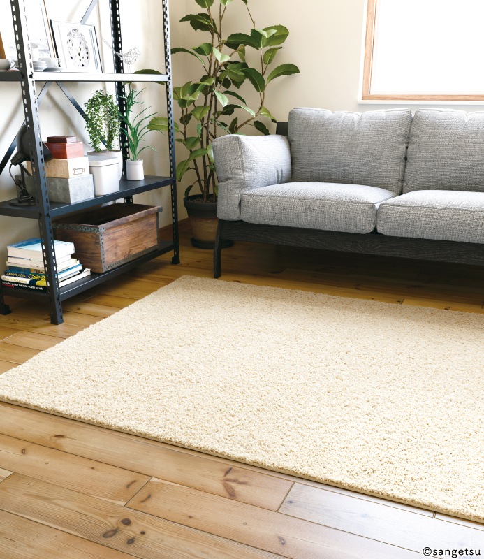 ツイスト糸によるボリューム感としっかりとした踏み心地のシャギーラグ。