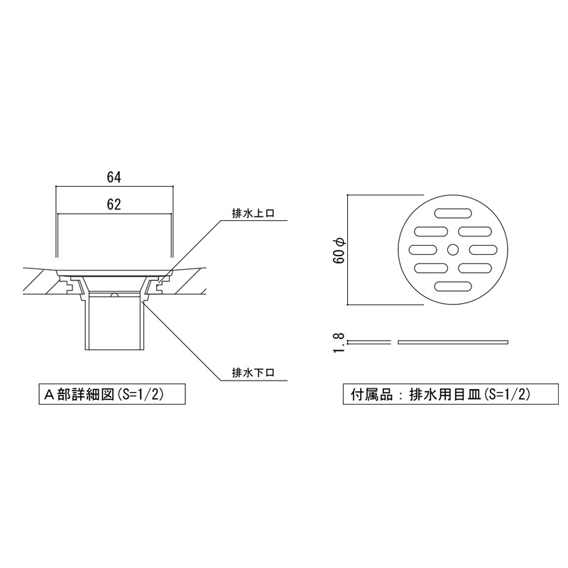 付属品:排水用目皿・ゴム栓(※水を溜める仕様にはなっておりませんのでご了承ください)