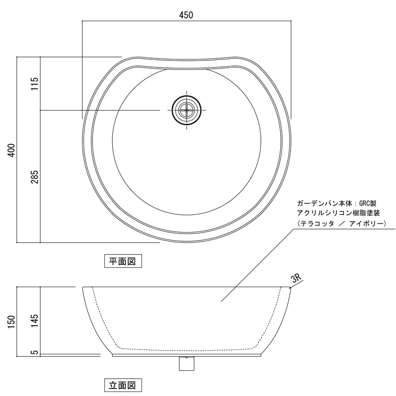 備考:樹脂製の排水口が付いています。