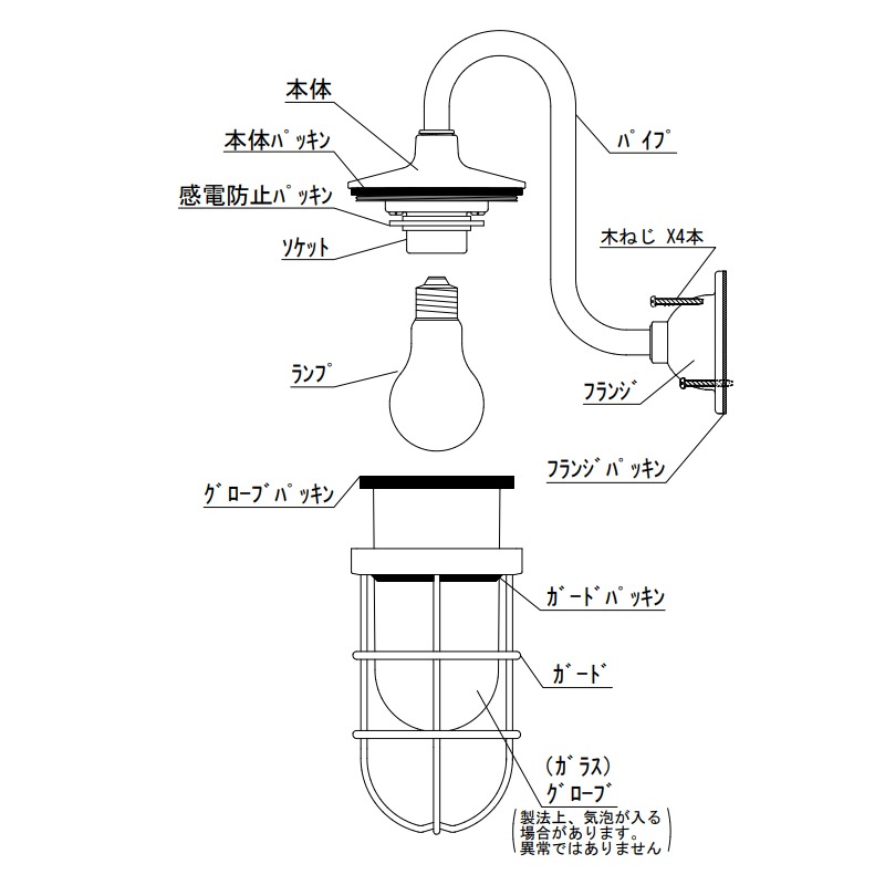 屋外設置につきましては、直接雨が当たらない軒下設置にてご使用ください。 〇配線工事につきましては必ず電気工事士の有資格者(電気工事店)に依頼してください。〇屋外での取付方向は下記図方向でご使用ください。〇器具の特性上結露がグローブの内側につくことがございますので定期的にグローブ内部を拭いていただく等のメンテナンスが必要となります。